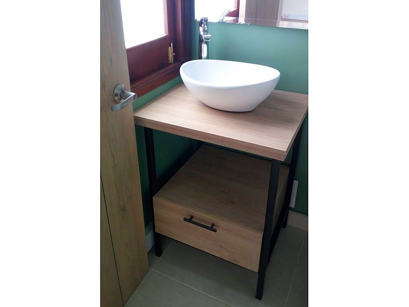 Mueble para baño de hierro y madera con un cajón.