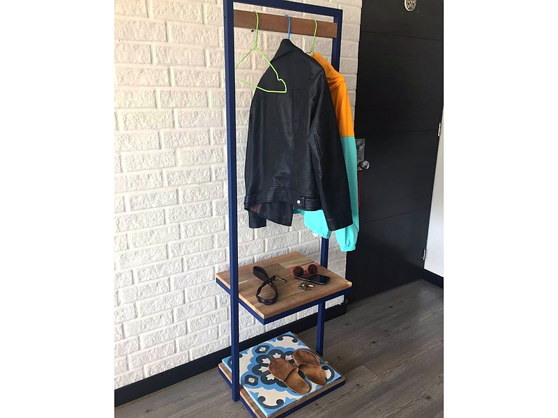 Perchero de pie con niveles.