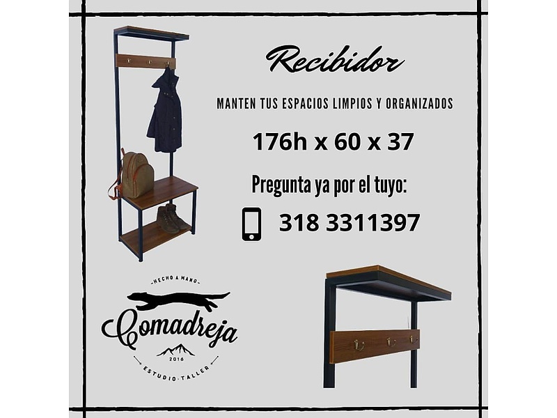 Mueble para recibidor con dos niveles y un perchero. Si estas buscando organizar tus espacios con estilo, te traemos nuestro nuevo recibidor con el que podrás, además de organizar tus prendas, mantener la limpieza al dejar en él todas las cosas que traes de la calle.