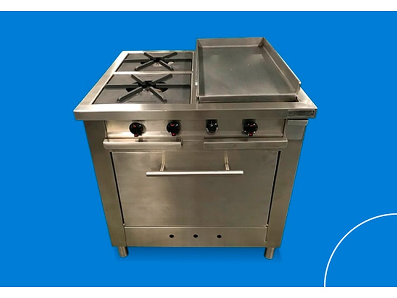 La estufa industrial modelo G-30-A está diseñada para entornos de alta demanda, fabricada en lámina de acero inoxidable calibre 18 y 20 con especificación 304-2B. Equipada con tres parrillas de hierro fundido, ofrece una calefacción a gas eficiente con un total de 276,000 BTU/H distribuidos en tres juegos de quemadores independientes. Incluye una bandeja recolectora de desperdicios también de acero inoxidable, lo que facilita la limpieza y mantenimiento. Es ideal para cocinas industriales que requieren durabilidad y rendimiento superior.