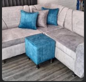 Sofá en forma de L en tono gris, con un diseño contemporáneo y líneas elegantes. Tapizado en tela suave y duradera, ofrece un amplio espacio para sentarse y relajarse. Ideal para salas de estar modernas, combina confort y estilo, convirtiéndose en el centro de atención del ambiente.