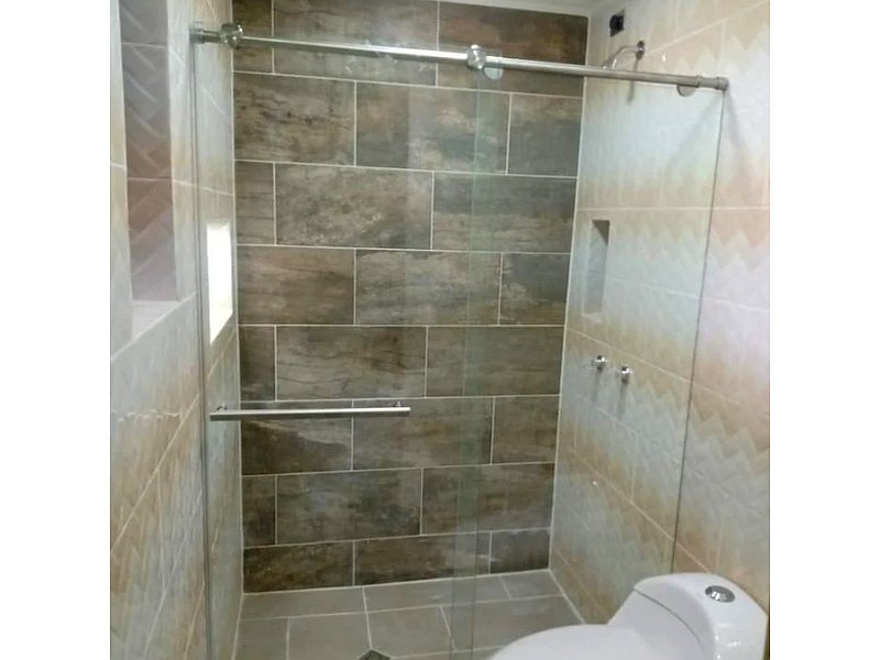 Cabina de baño en acero inoxidable y vidrio templado