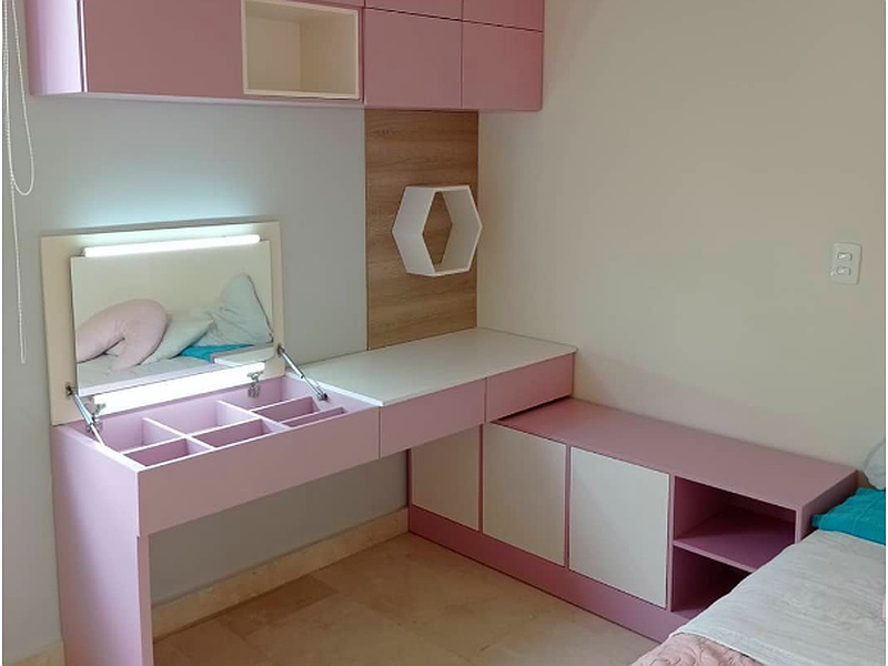 Ideal para ahorrar espacio en habitaciones más pequeñas, cuenta con amplio almacenamiento, cajones y espacio suficiente para organizar productos de belleza y accesorios.