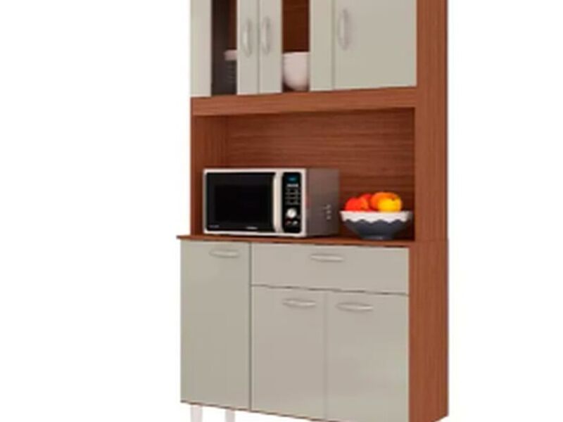 Alacena fabricada en mdp de 15 mm en color capuchino , con toques en puertas y cajones en color hueso.