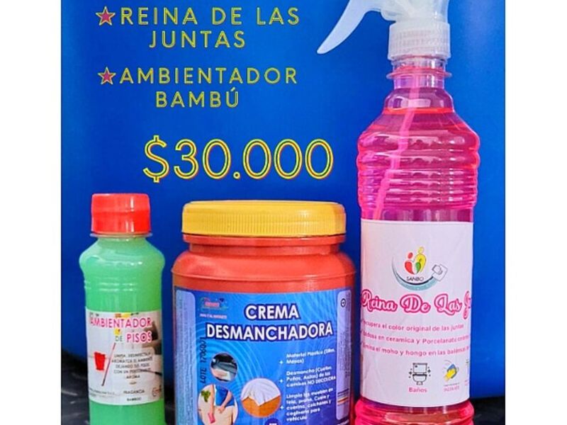 1 Crema desmanchadora 1 reina de las juntas 1 ambientador bambú