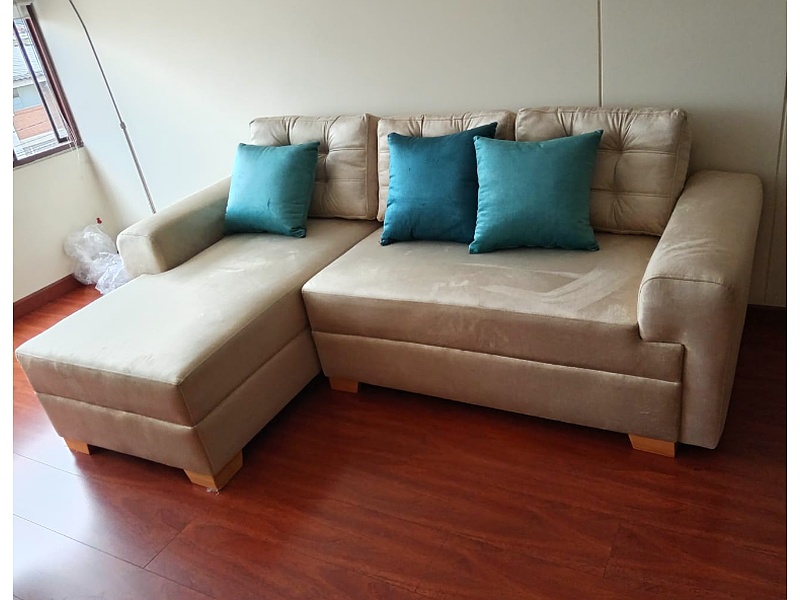 Este mueble en L beige combina funcionalidad y estilo en un diseño compacto y elegante. Ideal para espacios modernos, su color neutro y diseño en forma de L lo hacen perfecto para maximizar el espacio y ofrecer una solución cómoda y estilizada para tu sala de estar.