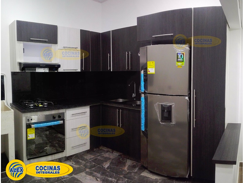 Esta cocina en L es la combinación perfecta de elegancia y funcionalidad. Con superficies de trabajo amplias y compartimentos estratégicamente distribuidos, proporciona un entorno eficiente para preparar alimentos y almacenar utensilios, todo dentro de un diseño contemporáneo que realza cualquier espacio.