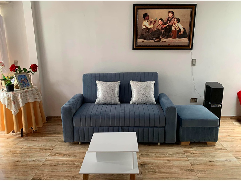 Este sofá cama combina funcionalidad y estilo, perfecto para espacios pequeños o para recibir a tus invitados. Durante el día, es un cómodo sofá con cojines suaves y un diseño elegante.