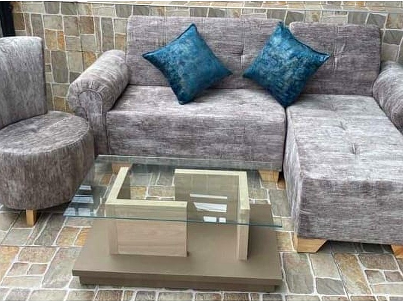 La sala esquinera moderna es perfecta para aprovechar al máximo los espacios compactos. Con un sofá modular en forma de L, tapizado en terciopelo gris, y cojines decorativos en tonos metálicos, esta sala ofrece un ambiente elegante y contemporáneo.