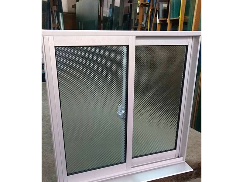 Ventana de vidrio corrediza con marco de aluminio blanco.