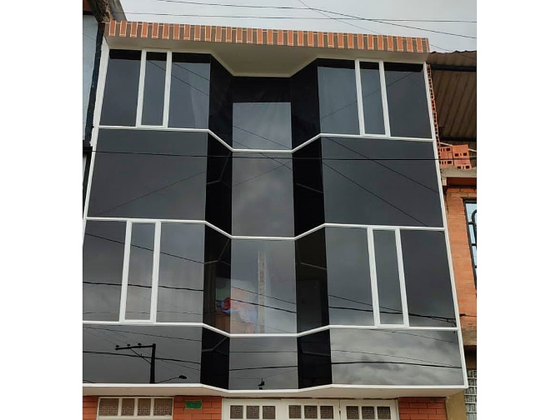 Material del marco: Los marcos de las ventanas están hechos de aluminio con un acabado blanco. El aluminio es un material ligero, resistente a la corrosión y muy utilizado en la construcción moderna.