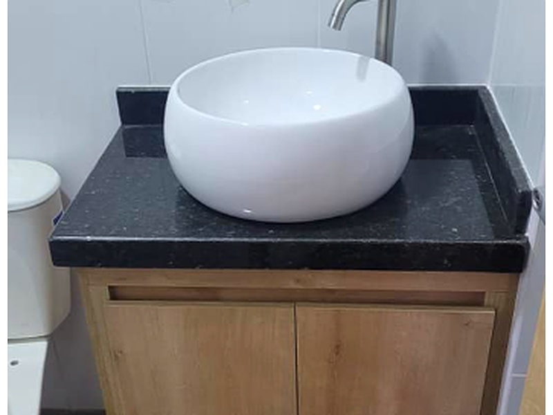 Este mueble para baño combina funcionalidad y estilo, ofreciendo un amplio espacio de almacenamiento en un diseño compacto. Fabricado en MDF resistente a la humedad, cuenta con cajones suaves y puertas con cierre amortiguado.