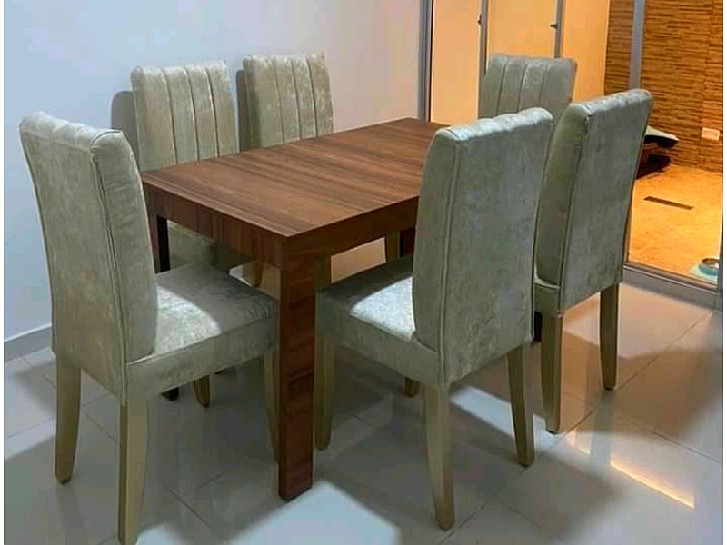 Este comedor de madera es una pieza robusta y elegante, perfecta para reuniones familiares. Su diseño atemporal y acabado en madera natural aportan calidez a cualquier espacio.