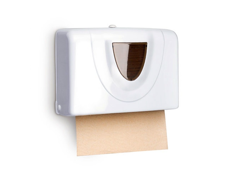 Dispensador de Toallas de Papel Institucional, fabricado en polímero de alto impacto, resistente a daños, cierre plástico. Hecho en Colombia.