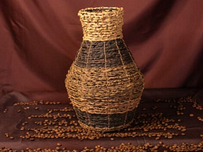 Jarrón grande tejido en palma seje en Ayapel, Córdoba