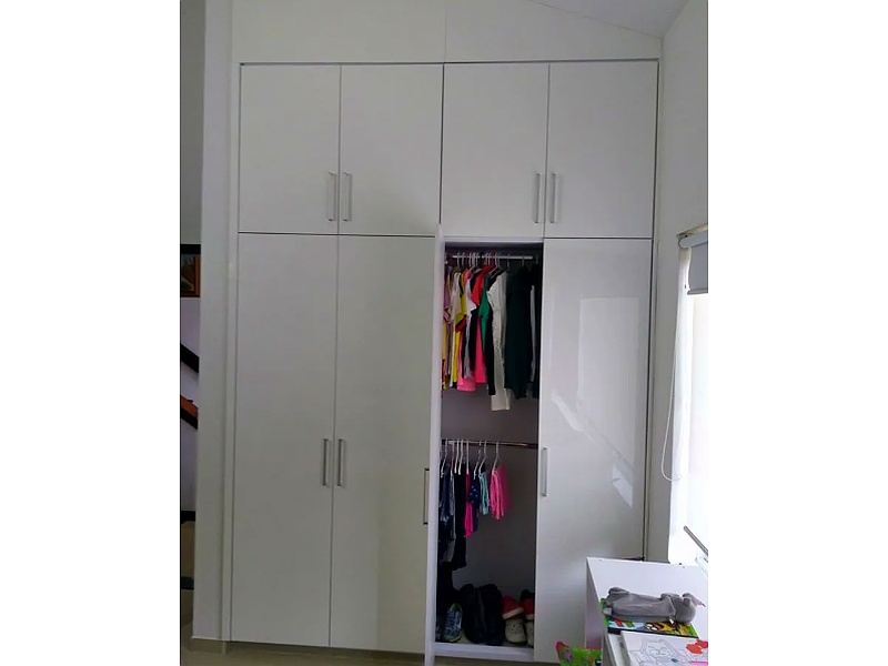 Closet con puertas en lámina de alto brillo, color blanco.