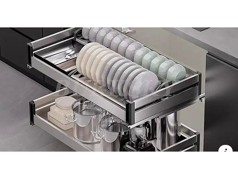 Sistema extraíble para almacenamiento de platos en muebles bajos, cestas de tracción, tipo cajón, palillos, platos y cuencos, cestas extraíbles, estante.