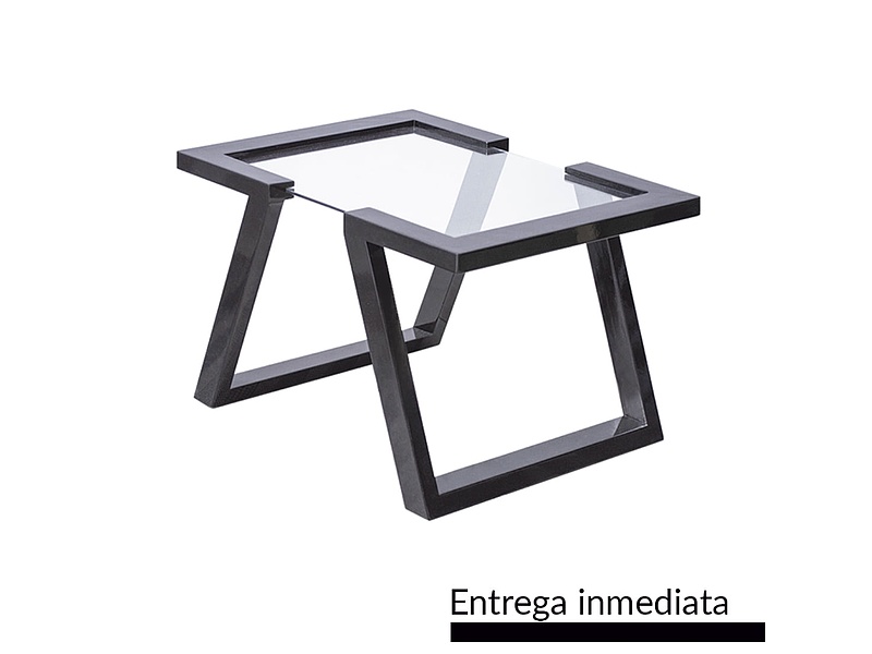 Hermosa Mesita de centro APRILIA de vidrio con soporte metálico.