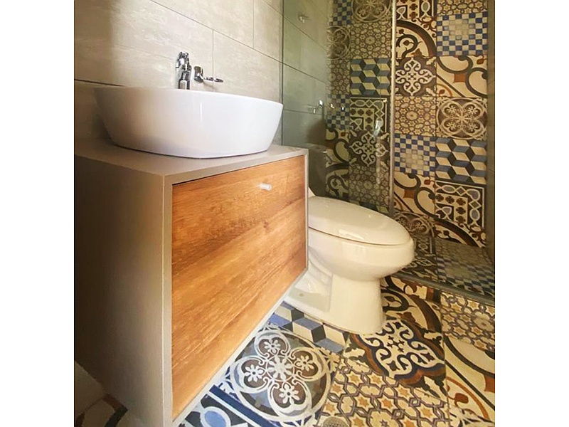 Mueble para lavabo de baño de madera.
