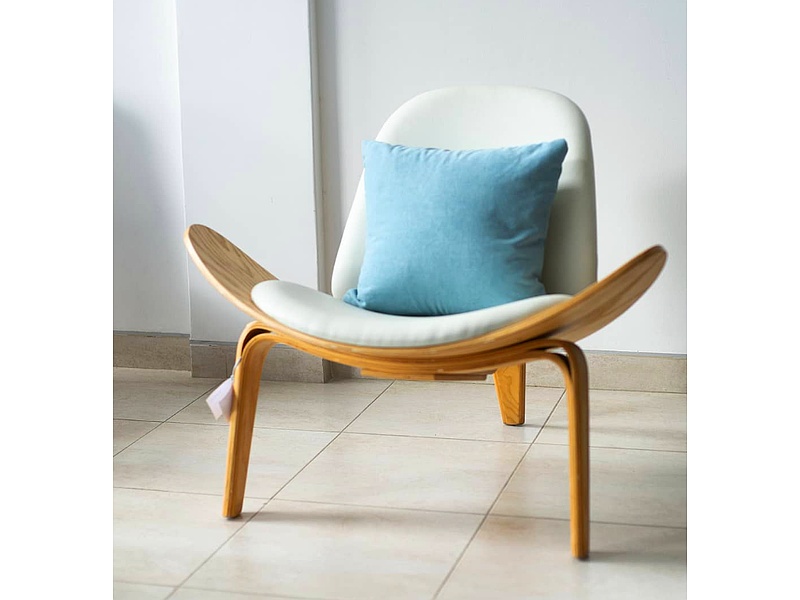 Poltrona Shell diseño ergonómico y acabado en madera de roble, moderna y versátil para cualquier sala.