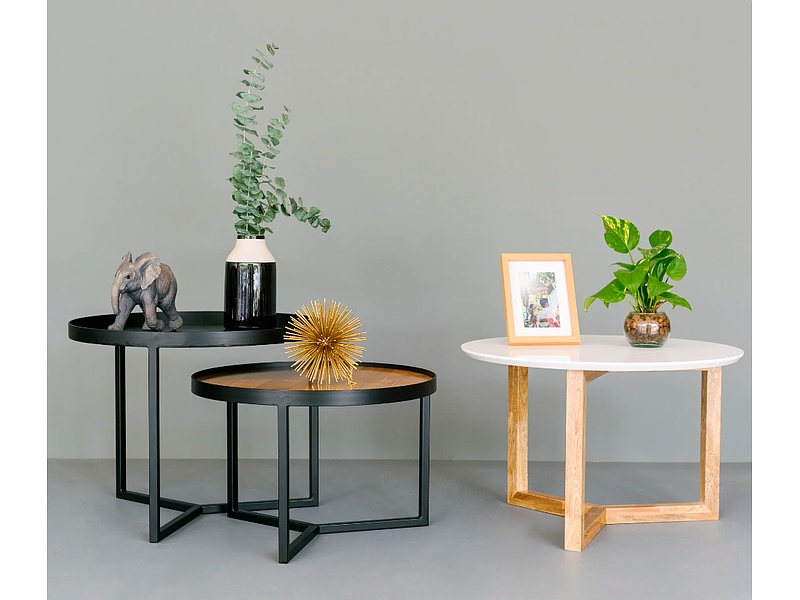 Mesas de centro modernas y funcionales, ideales para complementar la sala de estar. Su diseño incluye espacio de almacenamiento adicional, perfecto para mantener el área organizada.