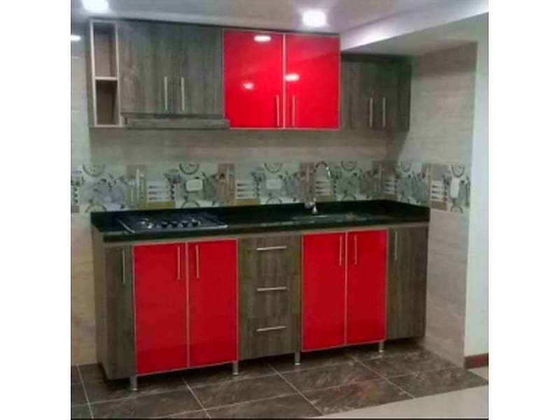 MUEBLES DE COCINA EN AEREO EN MELAMINICO COLOR ROJO