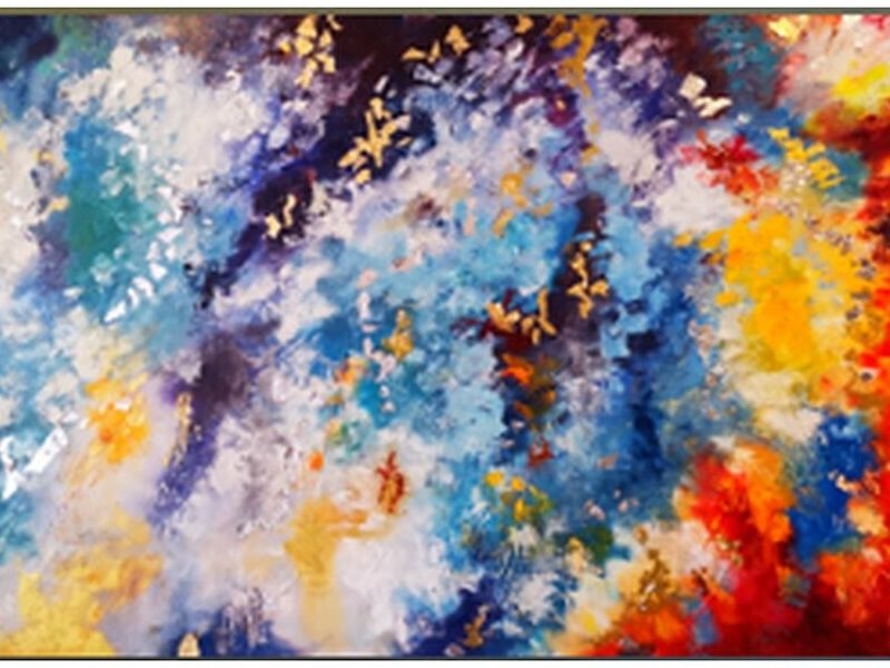 Cuadro Abstracto Moderno, está realizado por nuestro artista Marco Serrudo, que mezcla tonos vivos acompañados de laminillas de color dorado para dar un toque moderno; hecho a mano con la técnica óleo sobre lienzo, sobre carga de color al óleo, este también tiene toques de espatulado.