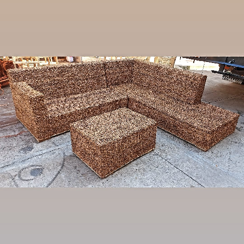 Muebles de madera y fibra natural, hechos 100% a mano por los mejores artesanos del país, Juego de sala de mimbre, sillón en L con mesa de centro.