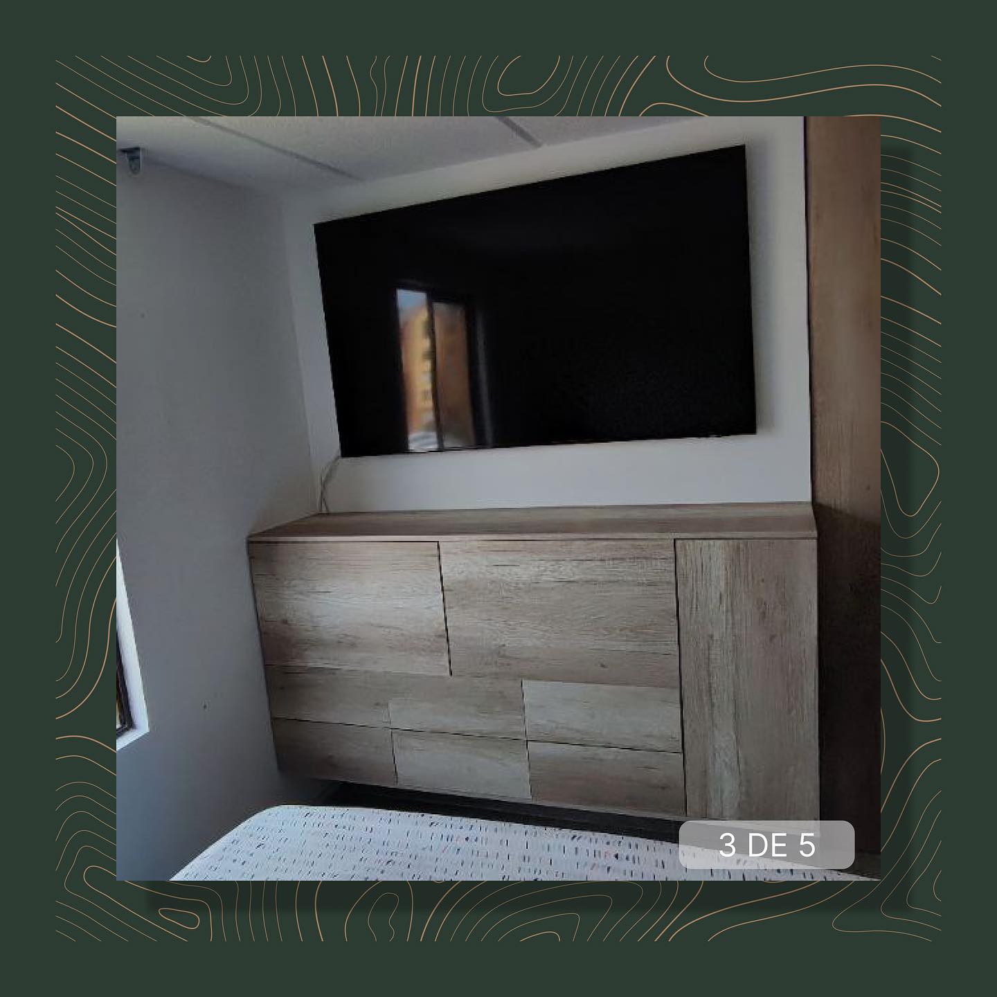 Mueble central de madera para la tv, sencillo y elegante.