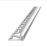 Perfil de aluminio de 10 mm con diseño curvo prolongado que protege los bordes e integra la unión de los revestimientos. Recomendado para porcelanatos rectificados