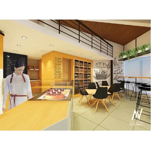 Diseña un local de cafetería con un mostrador accesible cerca de la entrada y una zona de asientos cómoda y versátil. Utiliza iluminación cálida y un estilo decorativo que refleje la identidad del lugar, creando un ambiente acogedor.
