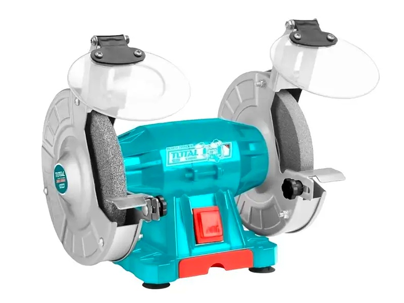 Herramienta de taller fija con dos discos abrasivos en los extremos, usada para afilar herramientas, desbarbar metales y dar forma a piezas de trabajo.