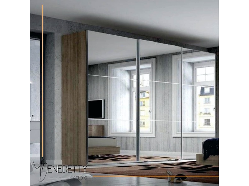El closet con puertas corredizas en espejo de piso a techo maximiza el espacio y la funcionalidad, ofreciendo un diseño elegante y moderno. Los espejos de gran tamaño no solo añaden un toque sofisticado, sino que también amplían visualmente la habitación. Las puertas corredizas facilitan el acceso y mantienen un aspecto ordenado y contemporáneo, integrándose perfectamente en cualquier ambiente.