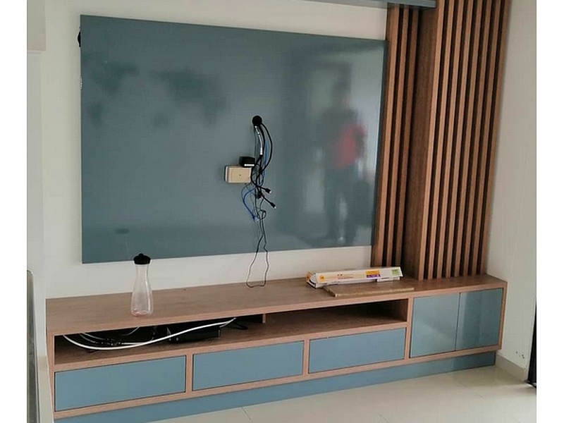 Centro de Entretenimiento en WP. Elegante unidad en madera de trabajo (WP) que combina funcionalidad y estilo.