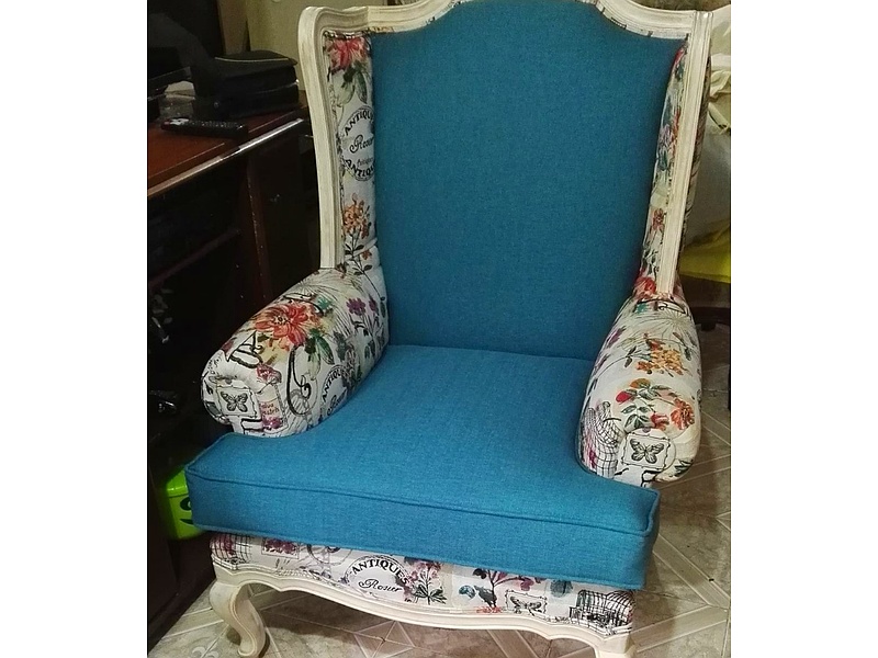 Butaca simple celeste con diseño