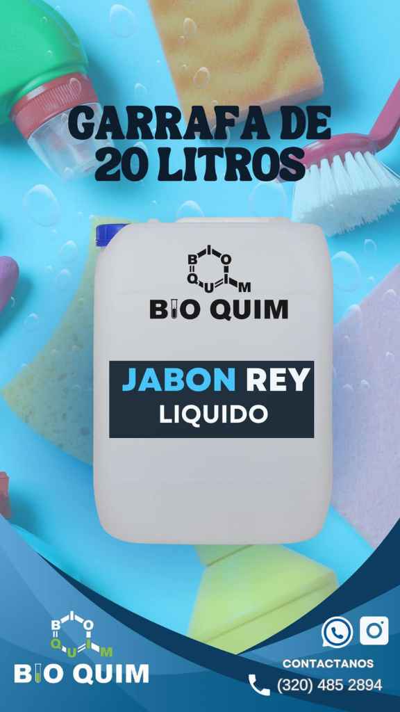 El Jabón Rey Líquido Bio Quim es la solución perfecta para una limpieza profunda y efectiva en tu hogar. Su fórmula concentrada remueve manchas difíciles y suciedad, dejando tus prendas y superficies impecables. Es suave con tus manos y amigable con el medio ambiente.