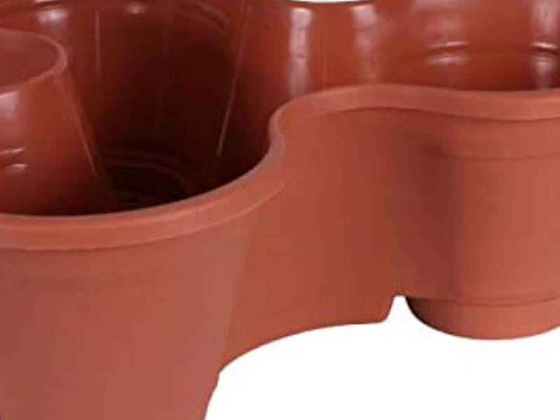 Macetas de plástico pequeñas diseñadas para ser apiladas y ahorrar espacio.