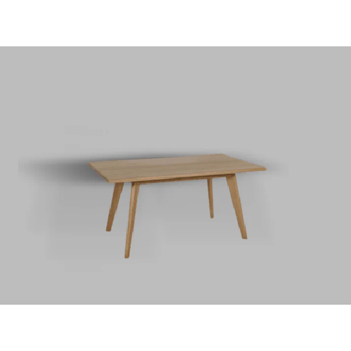 Mesa de comedor rectangular de madera barnizada con acabado semimate