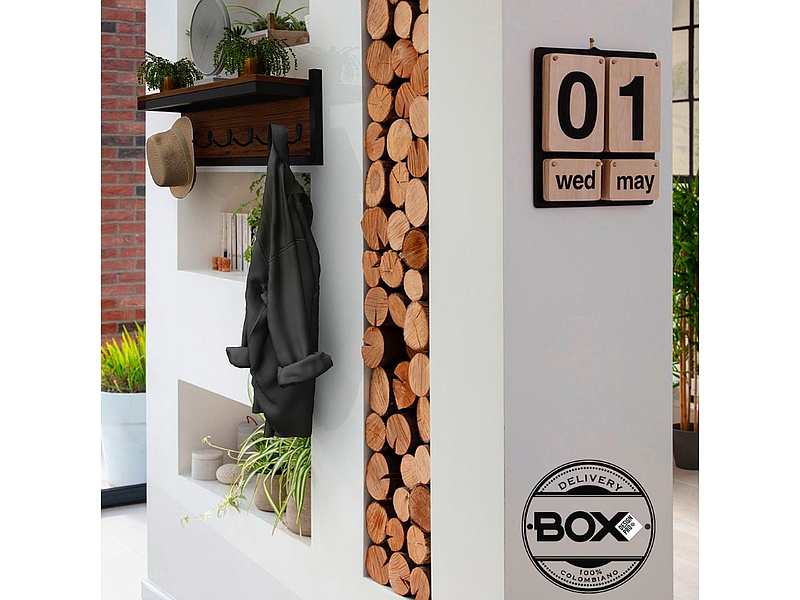 Perchero sencillo de madera son soporte metálico con base superior.