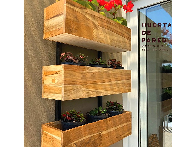 Repisa de pared de madera con soporte metálico.