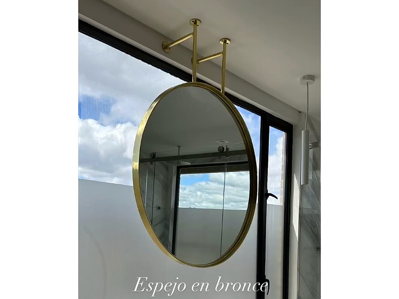 Este elegante espejo redondo en bronce añade un toque de sofisticación a cualquier habitación. Su marco de bronce detallado realza el diseño clásico y atemporal, mientras que el espejo ofrece una superficie clara y reflejante. Ideal para colocar en el vestidor, el baño o el salón, combina funcionalidad con estilo. La tonalidad dorada del bronce aporta un toque de lujo discreto a la decoración. Su tamaño versátil se adapta fácilmente a diferentes espacios.