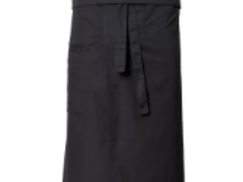 Delantal de una mezcla resistente de poliéster. En la parte delantera tiene un bolsillo grande y otro más pequeño con dos espacios diferentes. Tiene 50 cm de largo y 90 cm de ancho.