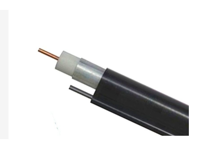 Es un cable troncal y de distribución de P3® (basado en tecnología de espuma expandida de gas de celda cerrada de 75 ohmios). Revestimiento de PE negro con figura integrada 8 mensajero de acero sólido galvanizado autoportante