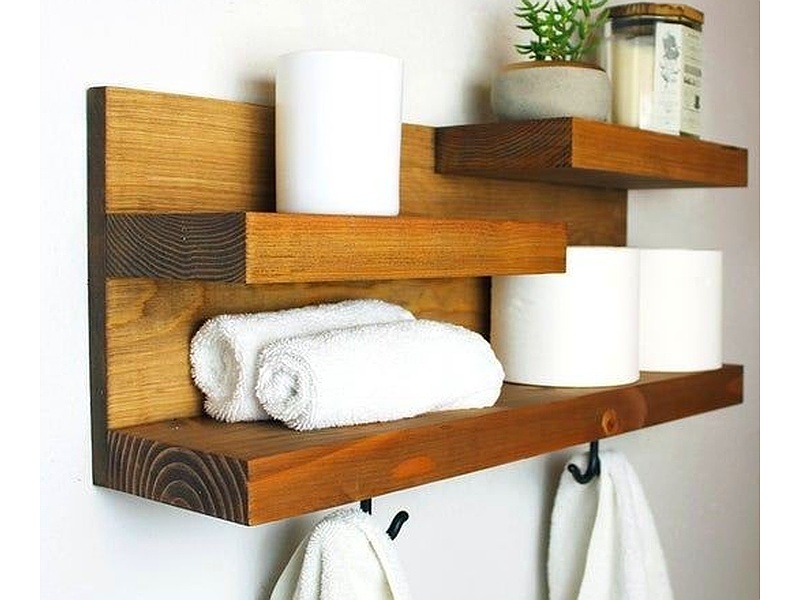 Hermoso entrepaño flotante para organizar tu baño. Nuez Especial.