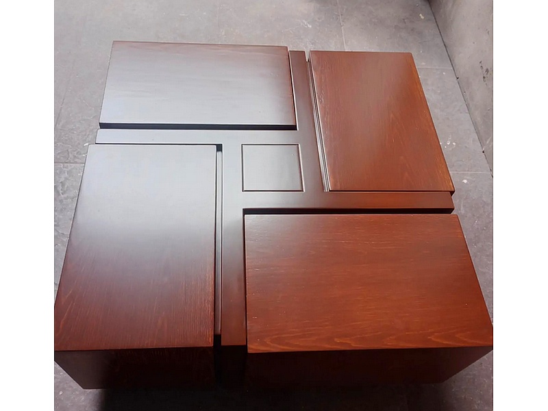 Mesa de centro estilo tetris en color caoba.