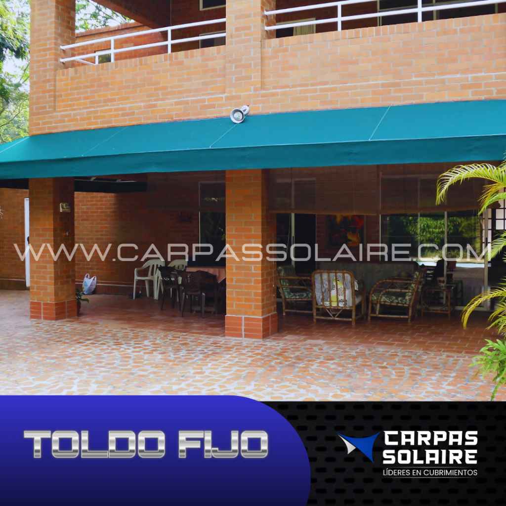 El Toldo Fijo Elegance de Carpas Solaire brinda una solución elegante y funcional para proteger tus espacios exteriores del sol y la lluvia. Su diseño clásico y estructura resistente se adaptan a cualquier estilo arquitectónico, creando un ambiente acogedor y protegido en terrazas, patios o áreas de descanso. Fabricado con materiales de alta calidad y tecnología de vanguardia, el Toldo Fijo Elegance garantiza durabilidad y resistencia a la intemperie, ofreciendo sombra y confort durante todo el año. Disfruta de tus espacios al aire libre sin preocupaciones con la protección y estilo que solo Carpas Solaire puede ofrecerte.