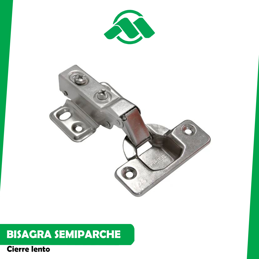 Una bisagra semiparche es una bisagra que se instala parcialmente ocultada en el marco y la puerta, lo que permite que solo una parte de la bisagra sea visible cuando la puerta está cerrada. Ofrece un acabado estético más limpio y ordenado al minimizar la visibilidad de los mecanismos, mientras proporciona el soporte necesario para el movimiento de la puerta. Este tipo de bisagra es ideal para aplicaciones en las que se desea un diseño más elegante y discreto.