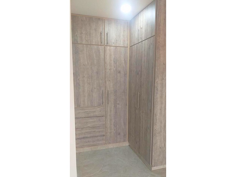 Closet en L en melamina color cenizo.