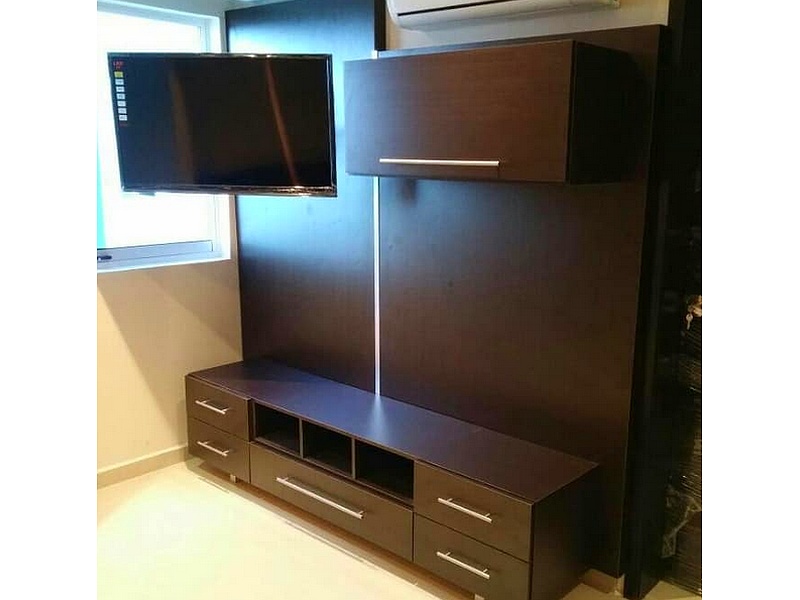 Centro de entretenimiento en color caoba.