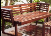 Banco espacioso destinado para áreas de jardín o exteriores. Puede estar hecho de madera resistente a la intemperie o materiales sintéticos.